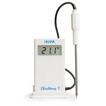 HI98509 Checktemp ® 1, ölçüm cihazını ve paslanmaz çelik probu birbirine bağlayan 1 m (3,3') esnek silikon kabloya sahip yüksek doğruluklu bir termometredir. Keskin uçlu penetrasyon probu, meyve, sebze ve peynir gibi yarı katı ürünleri kolayca deler. Bu prob ayrıca sıvı, hava ve dondurulmuş malzemelerdeki ölçümleri de işleyebilir. Prob, sıcaklığı ölçmek için bir NTC termistör sensörü içerir.