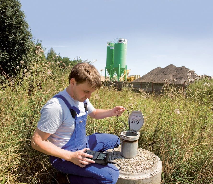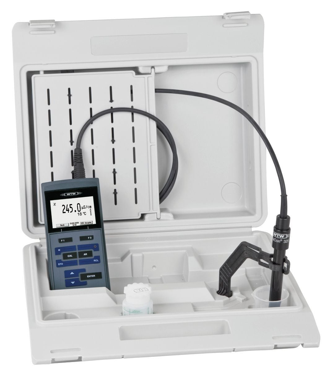 (TetraCon® 325 iletkenlik hücresi, +25 °C'de 1413 µS/cm standart çözelti, stand, beher, CD-ROM ve piller içeren saha çantası içindeki cihaz)